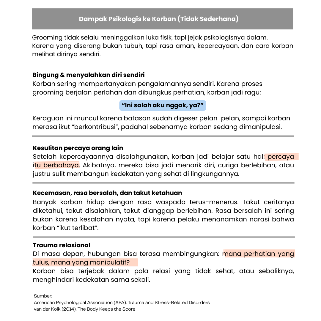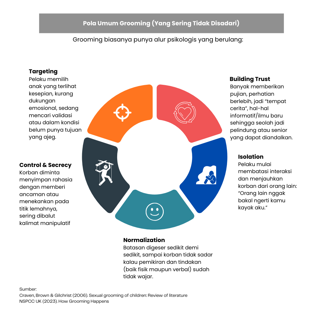 👉 grooming bukan kejadian sekali waktu, tapi merupakan proses bertahap.